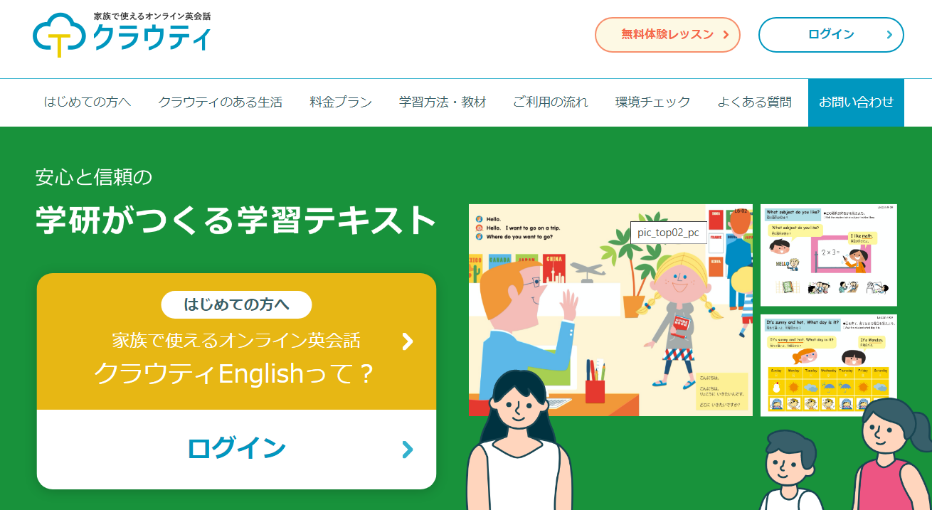 | 無料体験 | 【スタンダード/ウィークディ】 ・10日間(毎日25分×1回) 【回数プラン】 ・25分×1回 【幼児プラン】 ・15分×2回 |