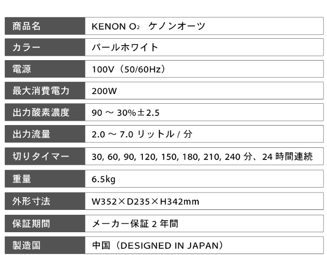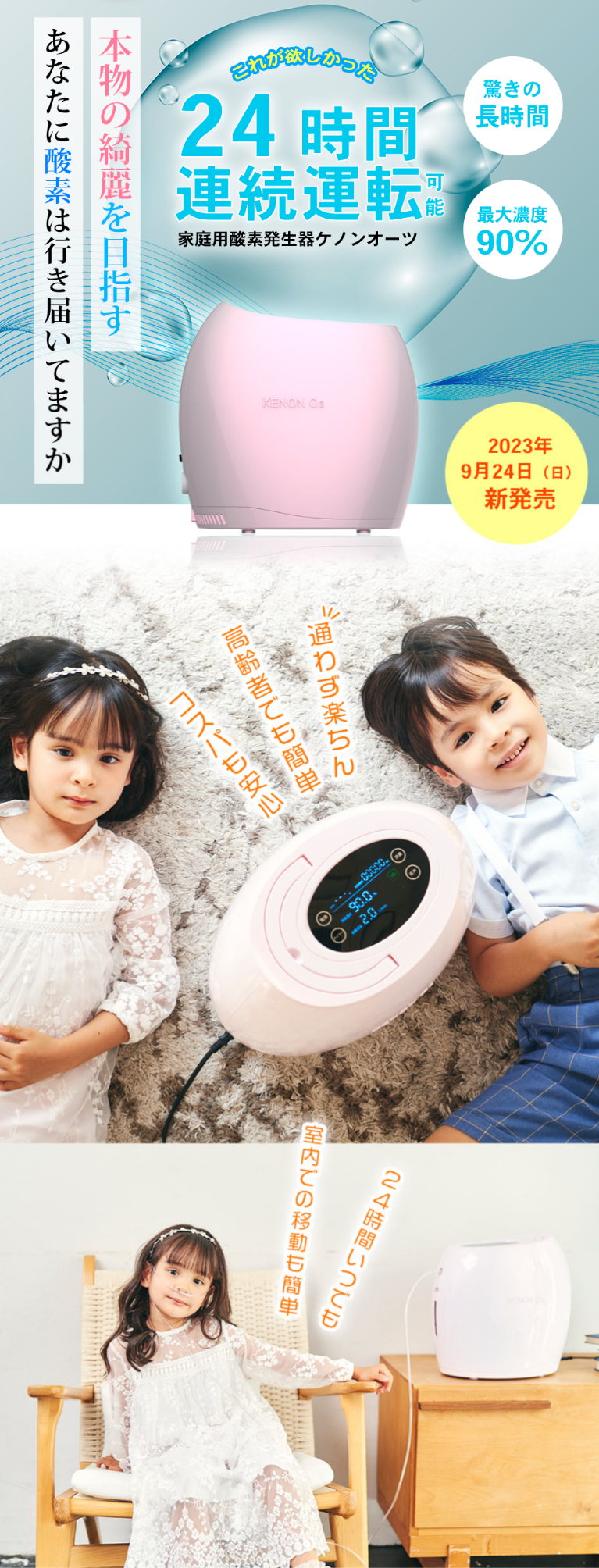 ※本製品(ケノンオーツ)は、ゼオライトを用いたPSA方式の酸素濃縮器です。大気中の酸素を取り込んだ機械内で濃縮し、濃度を高めた状態でチューブから噴出する機械であり、酸素を無から生成するものではございません。また、本製品は医療機器ではなく、医療行為やその代替目的でご利用いただく製品ではございません。