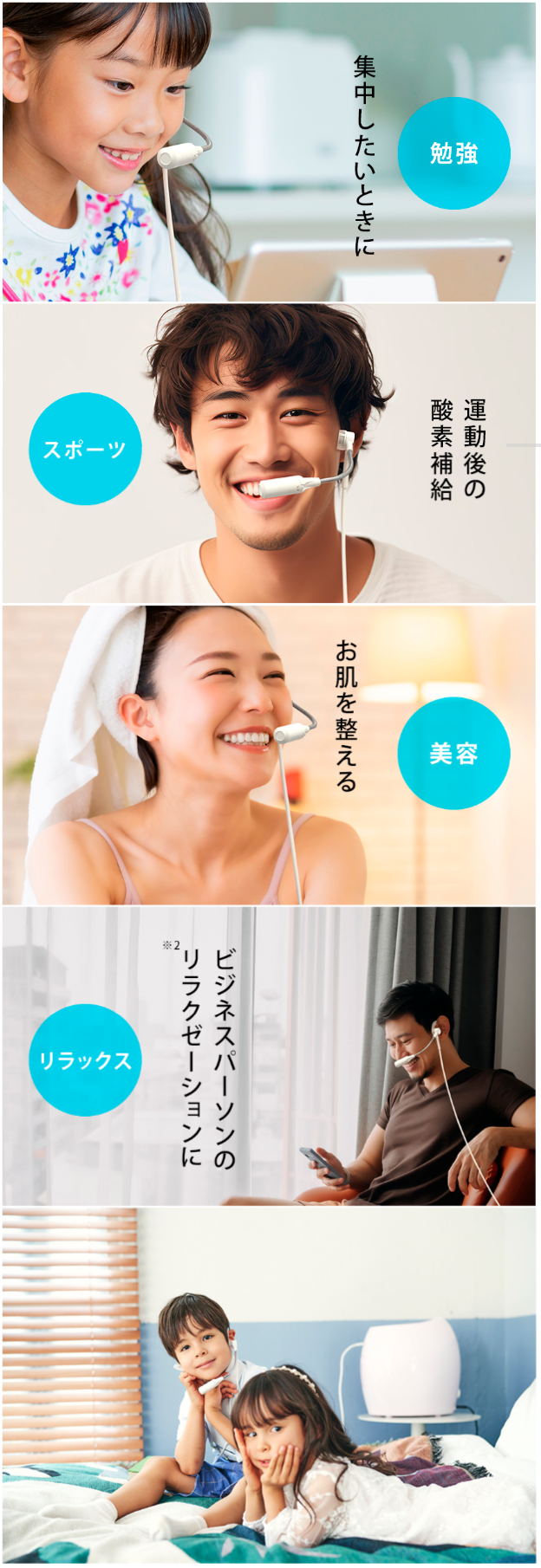 自宅にいながら、いつでも必要な時に、好きなだけ酸素チャージ