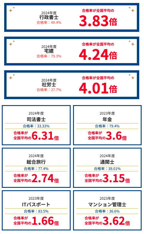国家資格や難関資格で毎年全国平均よりも