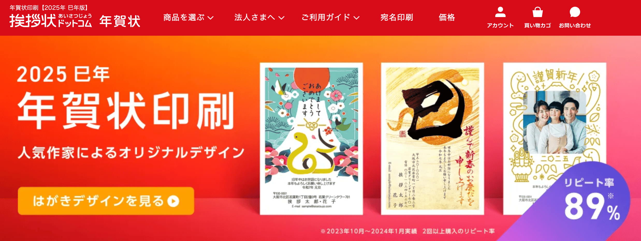 宛名印刷や送料も無料で、早割も割引率が高いので、安さでも他の通販サイトに負けていません!