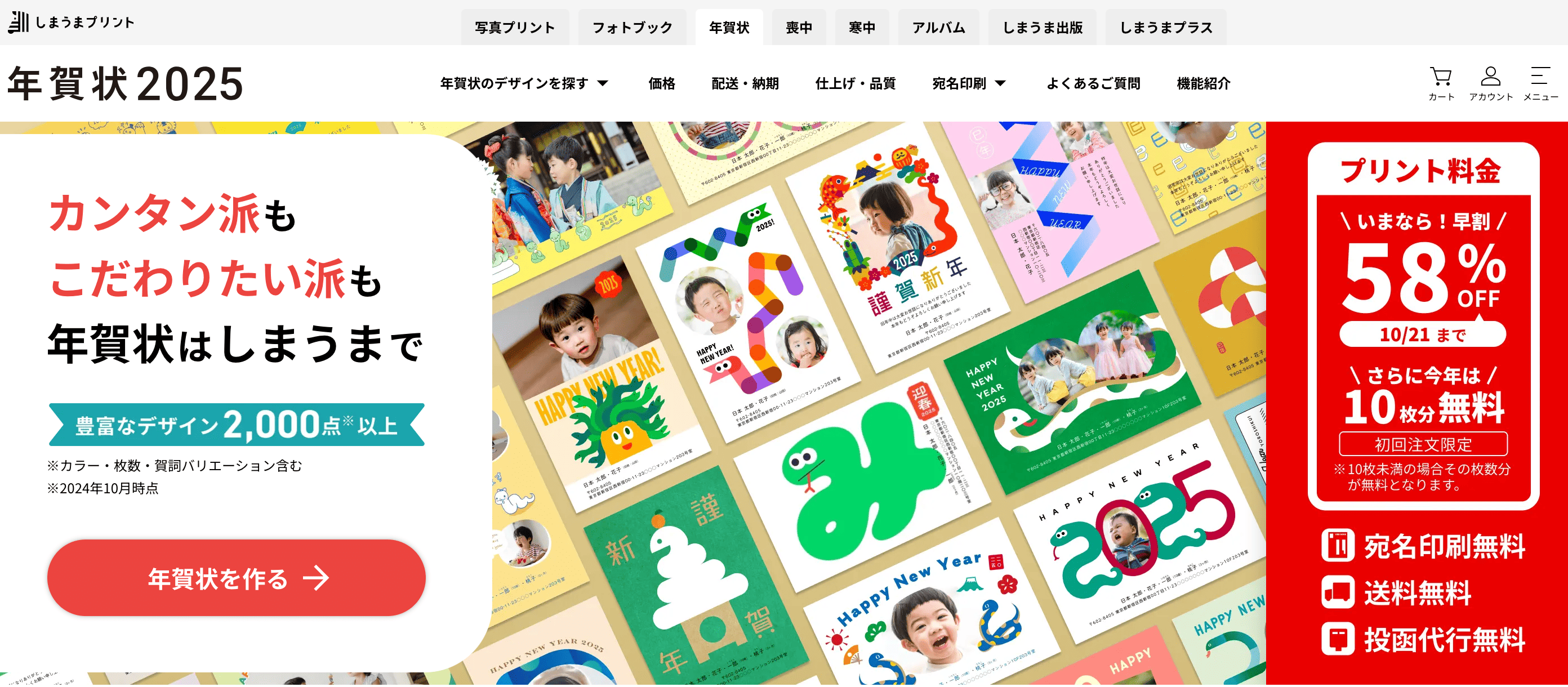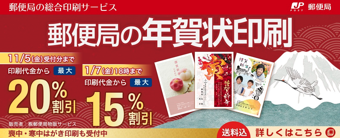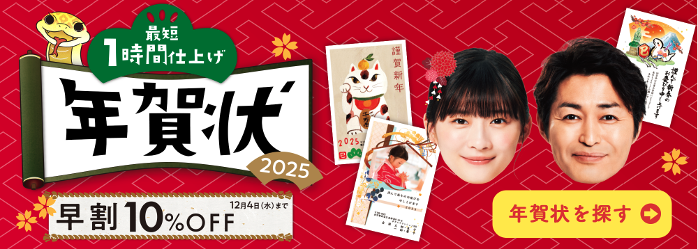 宛名印刷も送料も無料で、早割の割引率も高いので、11月中に注文するのがおすすめ。