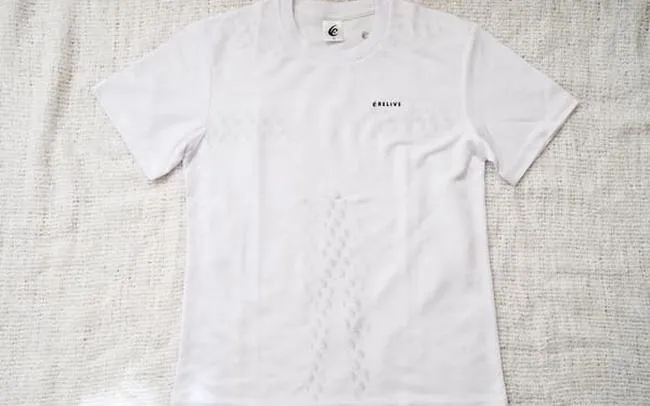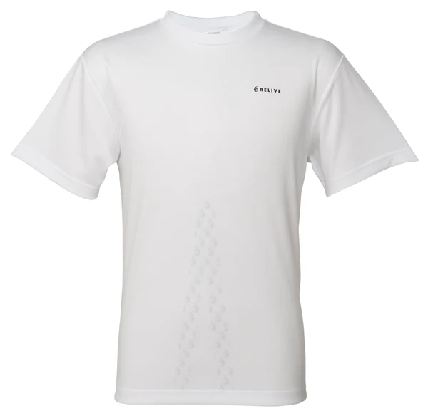 株式会社りらいぶが販売しているリライブシャツαは、疲労回復に役立つ「リカバリーウェア」。生地の裏側に鉱石を含んだ特殊なテープ加工を施し、鉱石が遠赤外線を放射して筋肉のハリ、コリを改善する。
