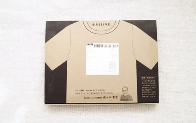 ポストに投函されるサイズで届き、受け取りの手間がかかりません。中にはリーフレットなどとともに、袋に梱包されたリライブシャツαが入っています。